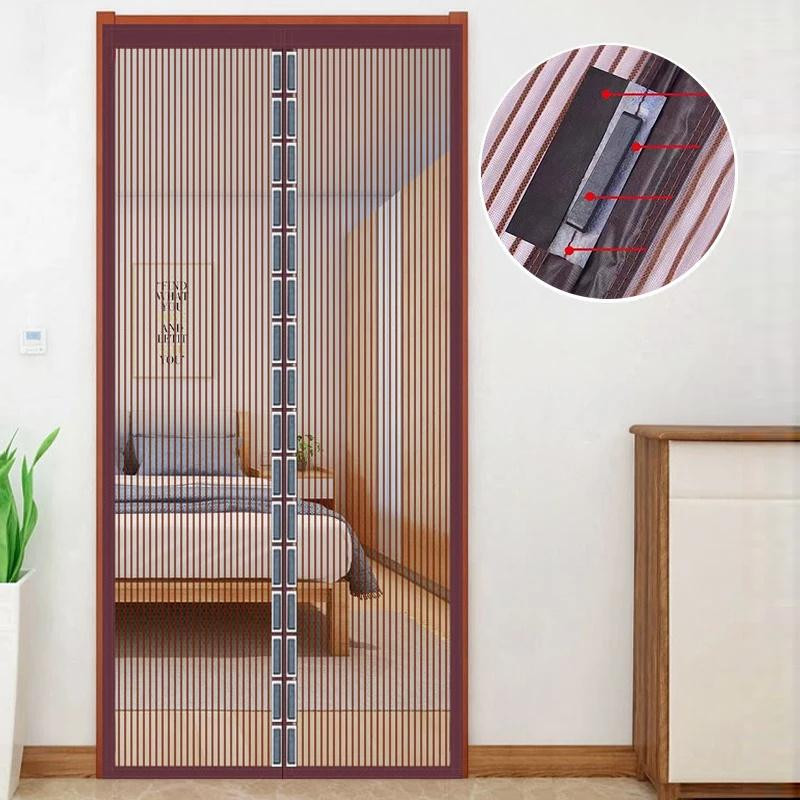 Антимоскитная сетка на магнитах охватывает всю площадь дверного проема, исключая тем самым возможность проникновения самых мелких насекомых в Ваш дом. При этом, вы можете легко проходить через неё. Распашные половинки сетки, под весом магнитов быстро возвращаются на место и закрывают проход.